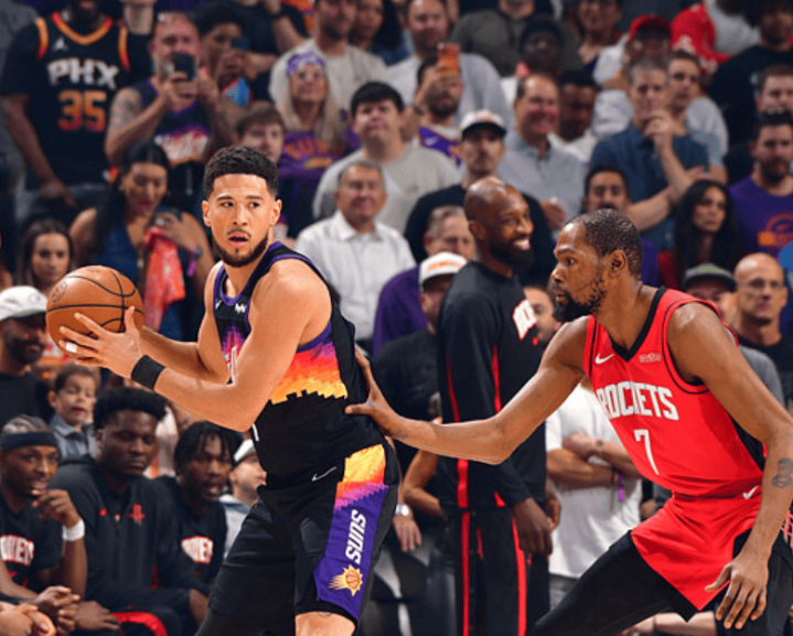 本场比赛,火箭球员凯文-杜兰特出战35分钟,20投8中,其中三分球9投5中,罚球3投3中,得到24分4篮板3助攻。德文-布克出战38分钟,16投7中,其中三分球6投2中,罚球16投15中,空砍31分4篮板8助攻。